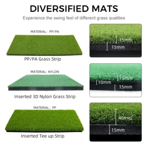 Elevate your game with our Indoor Golf Combo Swing Mat, a premium hitting and driving practice mat engineered for realistic feel and durability. The replaceable grass surface simulates real turf conditions, allowing repeated swings without wear. This versatile golf training mat fits any space—home, office, or garage—and serves as an essential golf training aid for consistent improvement.